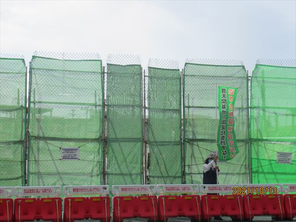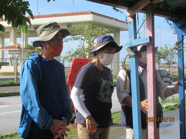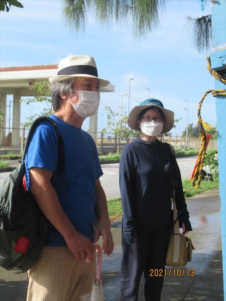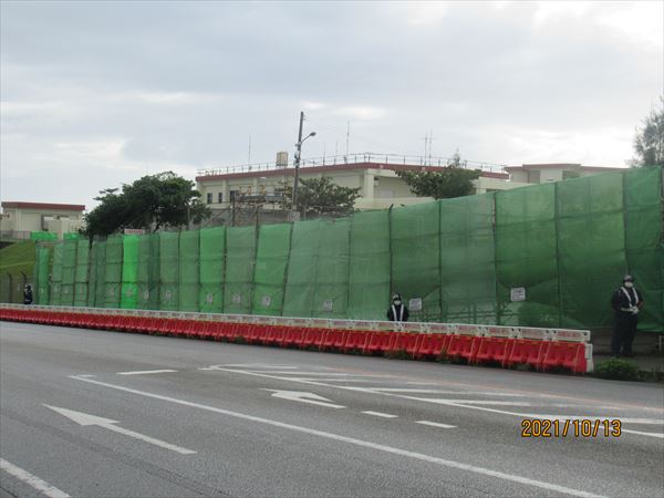 高知県平和運動センターの関係者が3人、「毎年5・15平和行進に来ているが、コロナ禍で2年連続中止になった。それでも一年に一度は沖縄に来たいと思っている。非常事態宣言が明けてやっと来れた。今日は抗議船で海上行動にも参加する予定だったが台風の影響で船が出せず、ゲート前に来たが…」座り込みも中止とあって、とても残念そう。