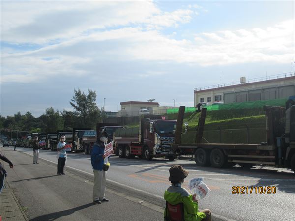 15:00、三回目の座り込み。さらに人数が減って、16名。ダンプもさらに減って数台が入っただけだった。