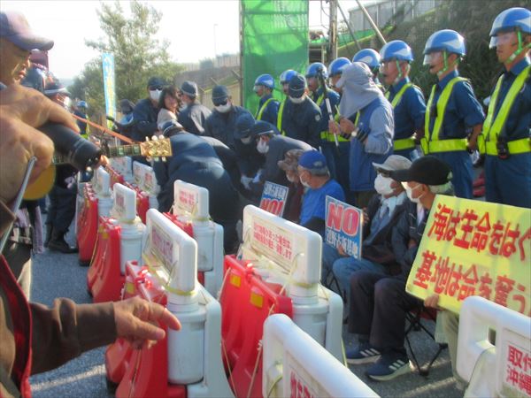 全国で沖縄の状況を音楽で訴えてきたプロのミュージシャン・川口真由美さんが4年ぶりに辺野古へ。情熱あふれる歌声がゲート前に響いた。