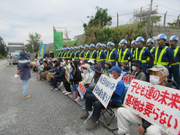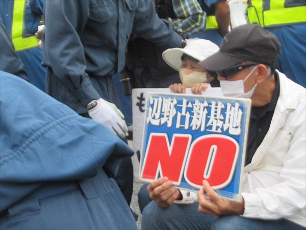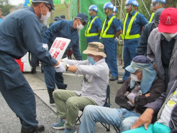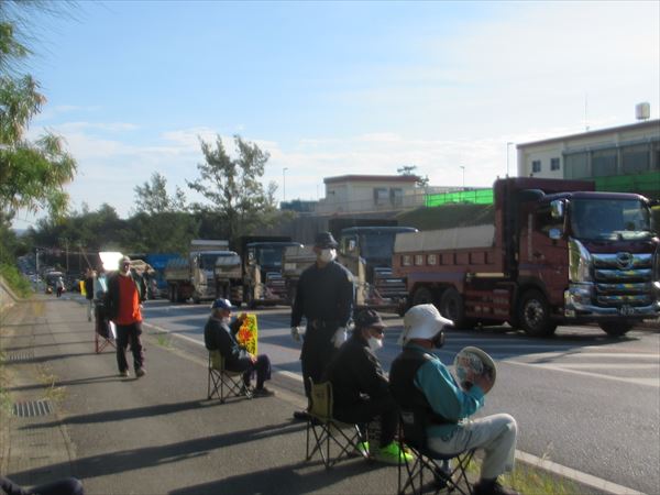 9時20分前、ゲート前に座り込み。今日も、辺野古の一日がスタート。