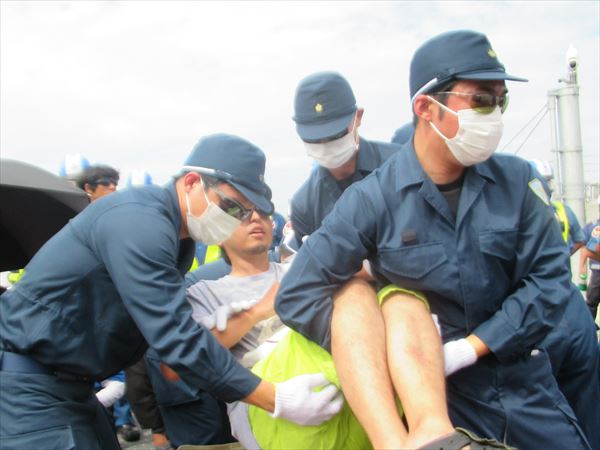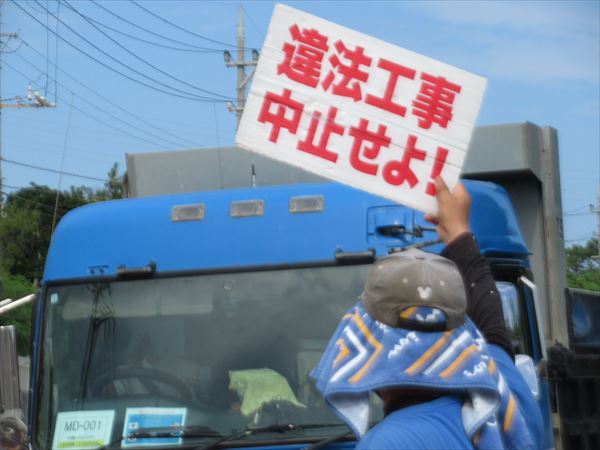 正午過ぎ、6月の死傷事故の後、埋め立て土砂の搬出が止まっていた安和桟橋で、明日(22日)から搬出再開との臨時ニュースが飛び込んできた。被害者の事情聴取さえ未だ行われず、事故の責任も明らかにしないままの搬出再開に、ますます怒りの声があがった。