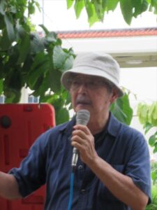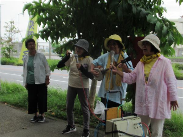 一回目の座り込みが終わり、糸満島ぐるみのメンバーが、サンシンと歌でしばし和ませてくれた。