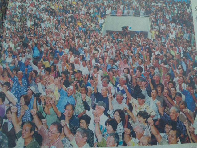 11月の県知事選挙を前に、できるだけ既成事実を重ね、辺野古埋め立てを後戻りできないようにするため、埋め立て作業前倒しして、強引に推し進めている国に対して、改めて沖縄県民の「新基地許さない」との強い意思を証明した「島ぐるみ会議結成大会」となりました。