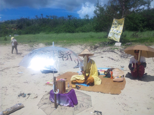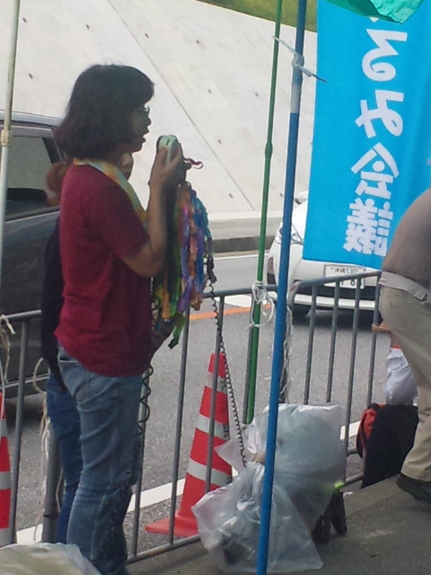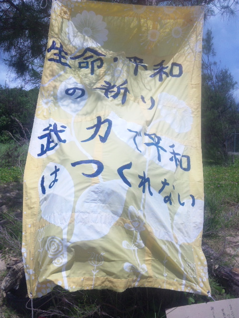 今日の辺野古 辺野古基地ゲート前の抗議の人の波は 日一日と数が増すばかり。 歩道の抗議テントは伸びる~のび~る! 主婦だから何もできないと思っていたが、手作りののぼりを作って届けに来ました。 「関西の親のいない子どもたちの施設で働いています。子どもたちに『辺野古へ行く』と言ったら、中学生たちが夜なべして折鶴を折り、『届けてほしい』と託されました」 高台から見た辺野古の海~抗議カヌー隊の姿も見える 辺野古浜のテント村~残念ながら日付は増えていく 今日もカヌー隊が頑張っていた 生きている海は貝殻も多い 仏教者も海に向かって祈る 武力で平和はつくれない! 祈る仏教者の頭上に青い空と白い光が!!!!! 沖縄~平和のメッセージ 2014年9月1日unaiリンクURL この記事を共有する → Tweet Pin It