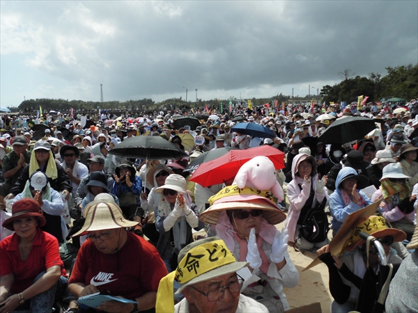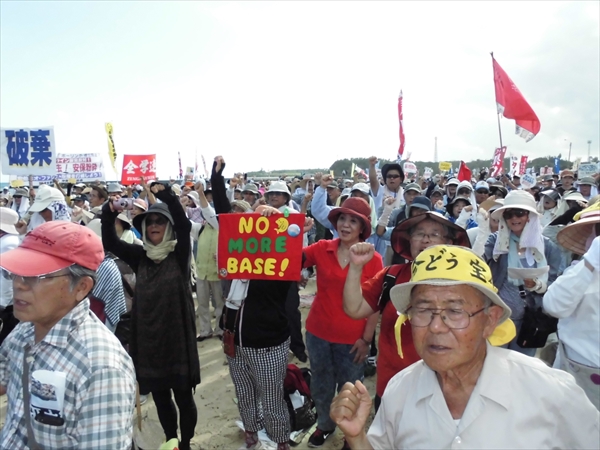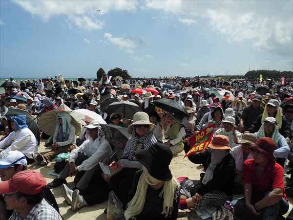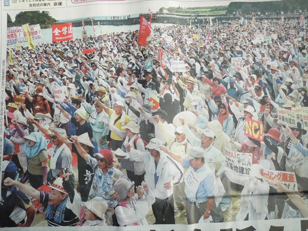 止めよう新基地建設!6.20県民大行動 今朝の新聞(琉球新報) 辺野古の浜を埋め尽くした5.500人の熱い想いが 台風の雨も押し返したかのような晴天の下、集会は開かれた。 前回の8・23集会に関して メディアから感想を問われた管官房長官は、 3.500人が目に入らなかったらしく 「空からは確認できなかった」と答えていたが さて、今回の5500人には何と答えるのだろうか。 辺野古浜の「砂粒かと思った」とでも 言うだろうか? 地元新聞の記事より, 沖縄~平和のメッセージ 2014年9月21日unaiリンクURL この記事を共有する → Tweet Pin It