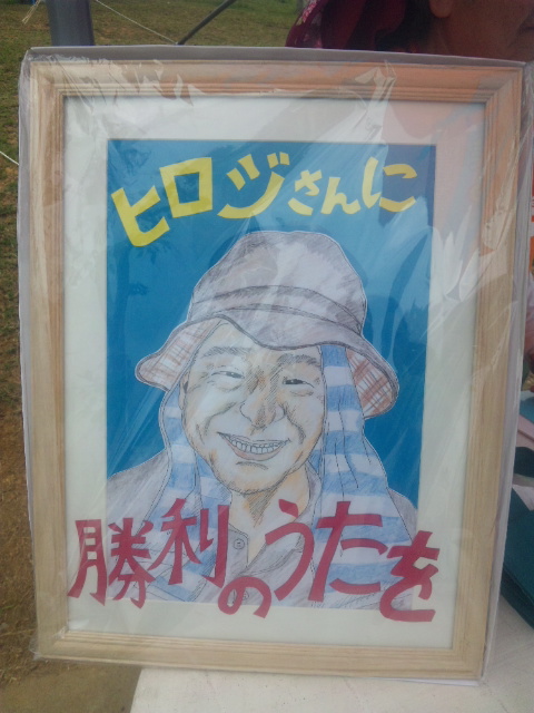 博治さん本人に代わって似顔絵が、人々を迎え励ます。