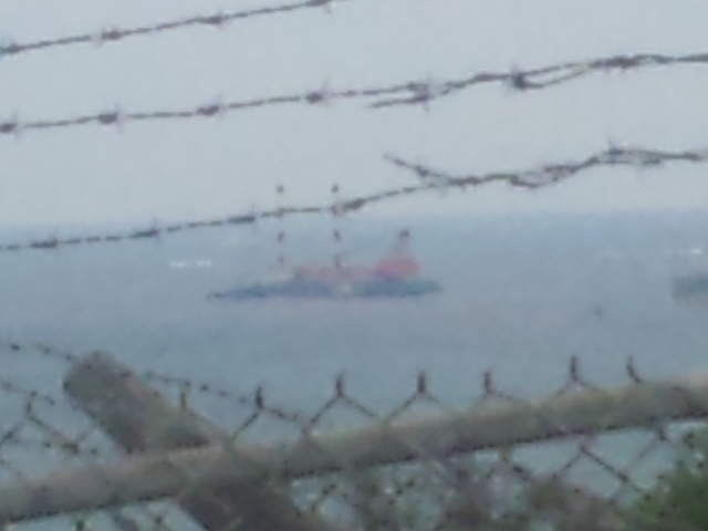 この日は波が荒く、二つのスパット台船に作業員の姿はなく、海上での調査作業は行われなかったようだ。