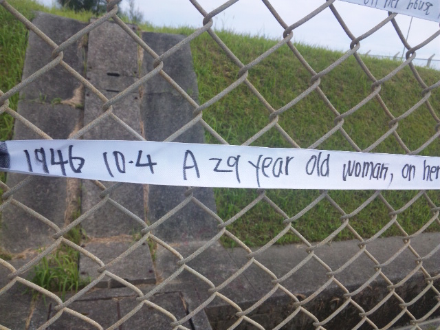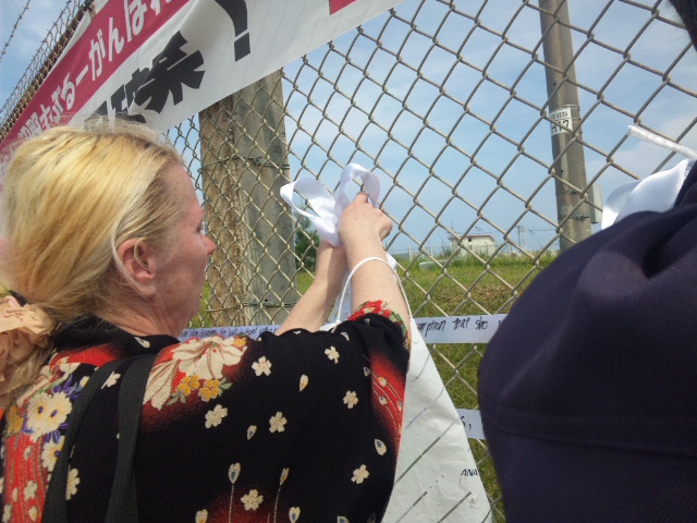 延々と続く白いテープを、みんなで辺野古基地の金網に括り付けた。一緒に結ばれたリボンは米兵の暴力によって殺されたり、身体と心を傷つけられた女性たちに捧げる鎮魂のリボン。
