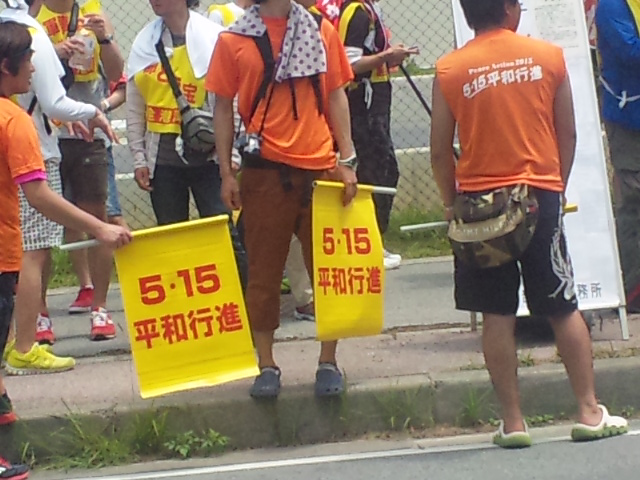5・15には毎年全国から大勢の人たちを迎えて「平和行進」が行われる。