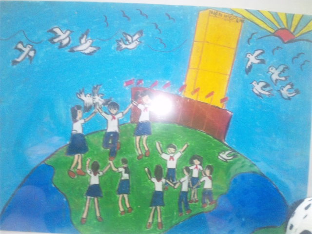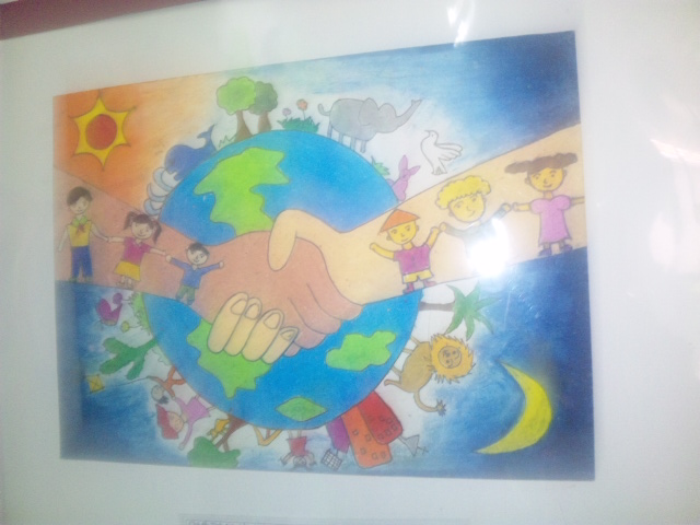 二階には子どもたちが描いた絵・ラブ&ピースが展示されているので、こちらも是非見てもらいたい。