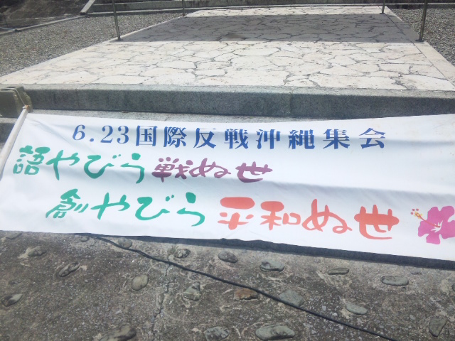 市民グループは、毎年、県主催の追悼式とは別に「魂魄の塔」の前で国際反戦沖縄集会を開く。