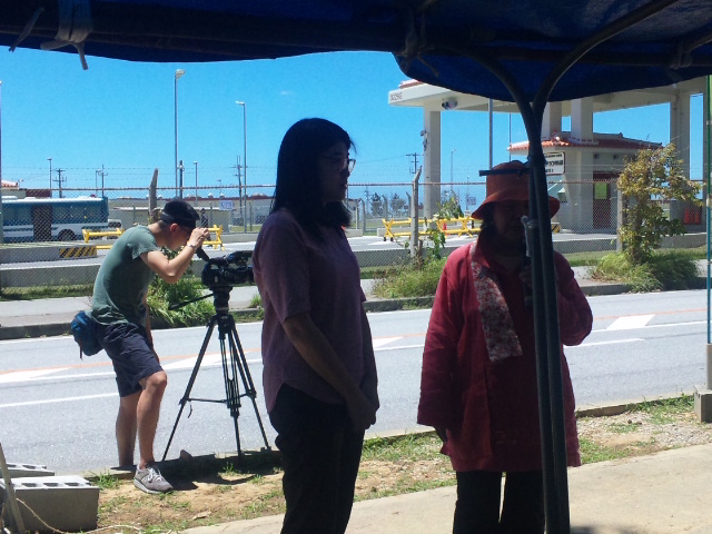取材しての感想を!とマイクを向けられたディレクターは、「沖縄辺野古の運動は浜のテントで18年、ゲート前で一年余り続いていることに驚いている。香港の民主化運動も学生などを中心に大きく盛り上がったが、毎日続けることは難しい。辺野古が続けられることの原動力は何か、この取材で見つけ、香港の人たちに伝えたい。皆さん頑張ってください」と、沖縄にエールを送った。