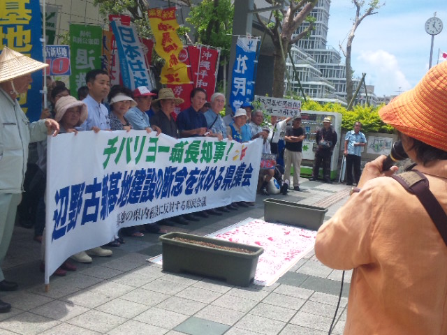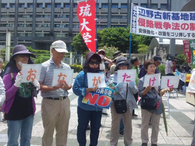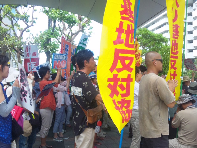 「内閣支持率の低下を何とかしたい安倍政権の政治的パフォーマンスに過ぎない」と認識。「あわよくば県民と翁長知事の間にくさびを打ち込もうとする政府の欺瞞を許してはならない」「一ヶ月ではなく永久に停止させよう」と声を揃えた。