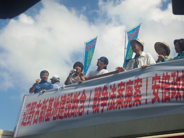 「8月30日の国会前行動に参加して、武器に頼って平和を築く時代は終わると確信した」「ここに来て、本当にみんなが怒っているということを実感した。この辺野古の地から日本に世界に向けて平和のメッセージを届けよう」