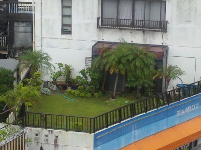 屋上緑化は、日差しが強く、民家でもコンクリート建ての家が多い沖縄では