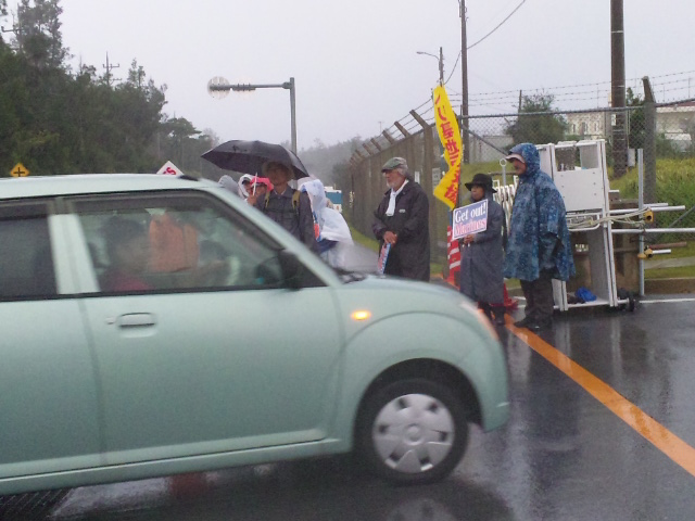 主に、出勤してくる米兵に「NO BASE」を訴える。