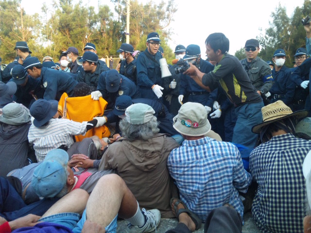 市民による、ただ座り込むだけの非暴力の抵抗に、襲い掛かるような機動隊の過剰警備に対し激しく抗議。一時米軍車両もストップさせた。