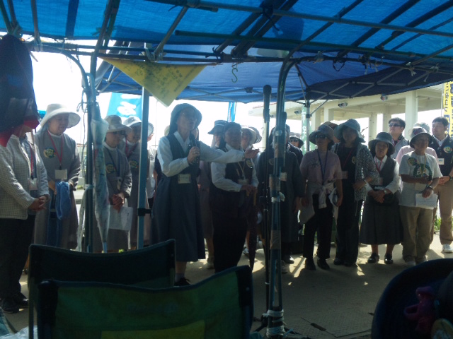 ゲート前のテントには、今日も全国からたくさんの応援団がやってきた。