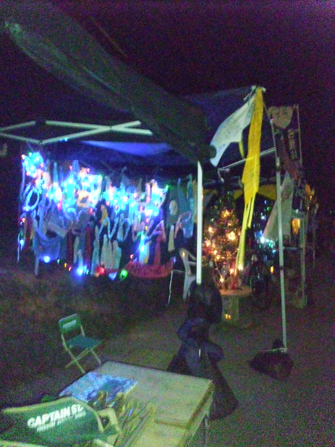 495日目、午前6時のゲート前にきらめくクリスマスイルミネーション。