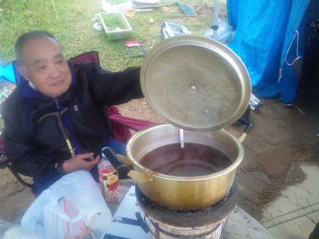 寒さが少し身に染みる今日のゲート前。差し入れの温かいぜんざいがうれしかった。