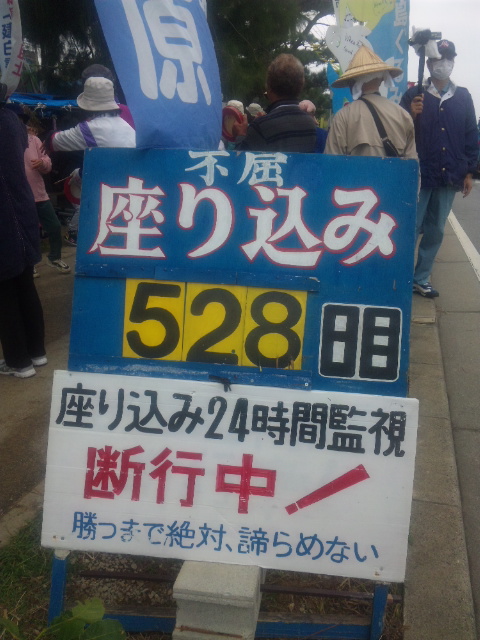 今日も早朝400人の余の座り込みで、工事用車両の進入を完全阻止したゲート前。