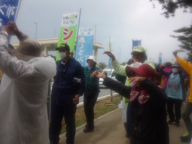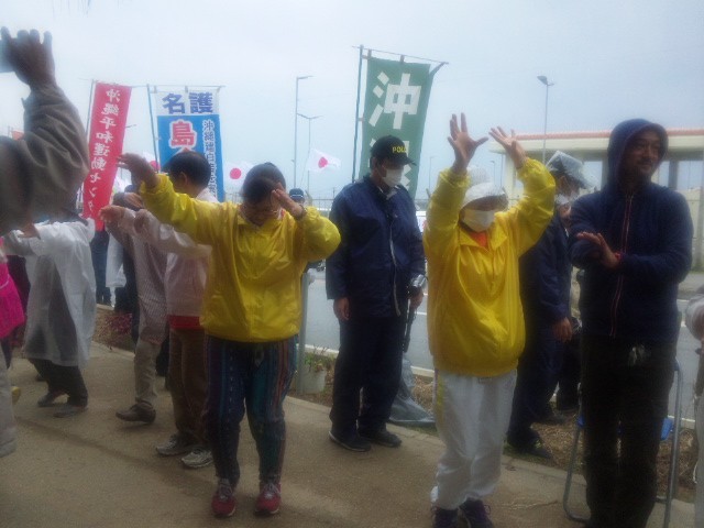 後でわかったことだが、辺野古浜の抗議テント近くで、昼食と総括集会を開いた日の丸集団は「我々の行動で、ゲート前の人々が委縮していた」と自画自賛していたとのこと。「大本営発表ってこういうことなのね」と報告してくれた人は笑っていた。