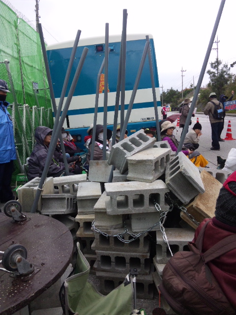 取り払われたブロックは機動隊隊長の命により2~300メートルほど離れたメインゲート前の座りこみテントの前まで運ばれた。それでもめげずにさらに多くのブロック、木材、ビニールの網などを集め、さらに強固なバリケードが築かれた。