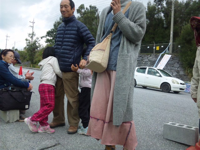 人ごとではなく、この子らに沖縄の人たちが味わった戦争のむごさを、二度と味あわせたくない。そんな気持ちで、わずかな時間だけど、沖縄の皆さんと一緒に基地のゲートに座りたい」と、二人のママは、涙を拭いながら、自己紹介した。