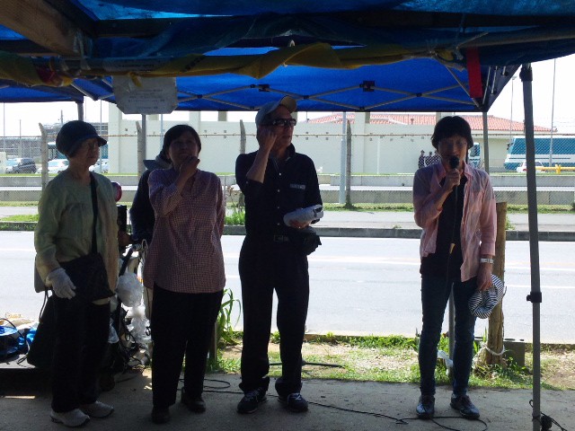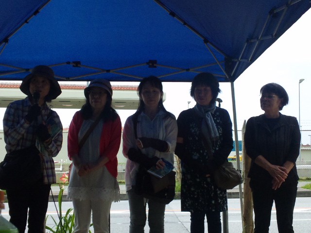 この皆さんは千葉から。千葉在住の沖縄出身の方が主催するツアーでやってきた。沖縄にはめったに来られないが、安保法廃止と辺野古反対で、毎週地元の駅前でチラシ配りなどをしているという。