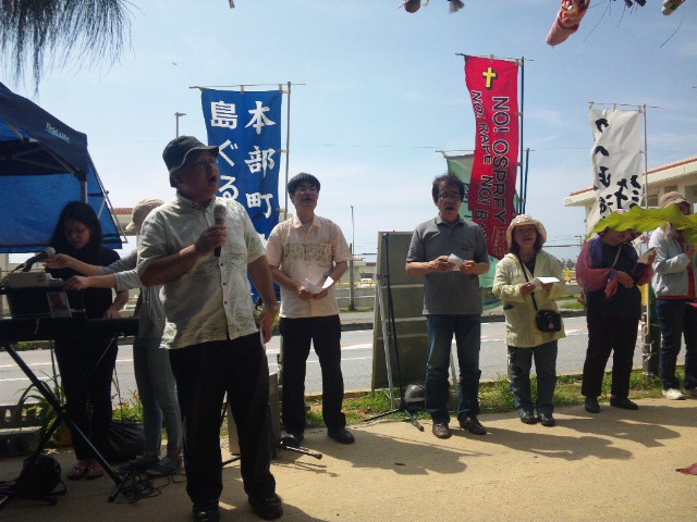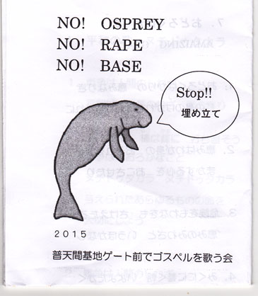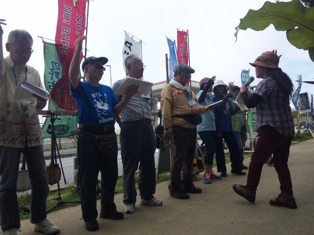 このグループは2012年からオスプレイの配備に抗議する普天間基地のゲート前行動に参加して、毎週金曜日ゴスペルを歌っている。昨年から辺野古ゲート前でも月に一度歌うようになった。
