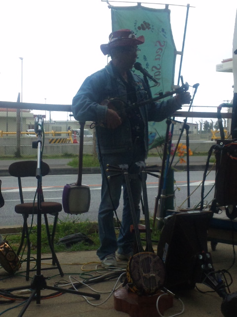 午後からは、辺野古総合大学の一環で、プロの歌い手・新里紹栄さんによる民謡ショーを楽しんだ。