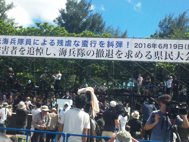 県議会超党派の県民大会とはなりませんでしたが「出席することが県民の意に沿うこと」として参加を決断した翁長知事。県民を代表する為政者として、被害者の命と尊厳を守れなかったことを詫びるとともに、改めて「辺野古新基地建設を許さない」決意と、「地位協定の抜本的改定」などに取り組むことを誓いました。