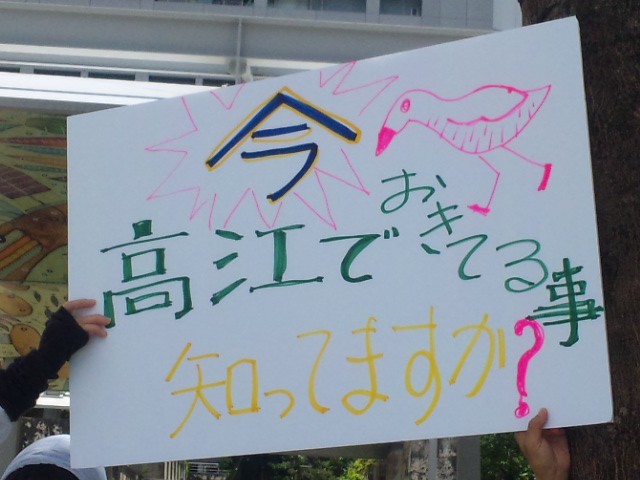 高江は遠く、那覇から3時間はかかる。抗議に駆けつけたくても行けない人々が、せめて抗議の声をあげようと、那覇市内・県民ひろばで、スタンディングアピールを行った。