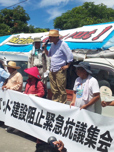 住民の会の伊佐共同代表「正月もお盆もなく(台風時を除く)24時間ここで座り込み10年目に入った。この間6つのうち二つしか造らせなかった。後の四つは絶対につくらせない」
