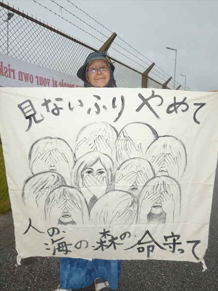 福岡からやってきた若い女性が、「これから高江に向かうが、辺野古にもエールを送りたい」と、手づくりのバーナーを託していった。