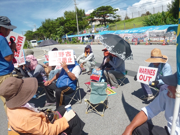 普天間基地でも野嵩ゲートと大山ゲートで、基地が休みになる土・日以外毎日ゲート前行動を地道に続けている。