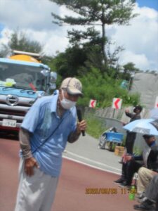 久々に、ミスター辺野古・山城博治さんの姿も。「選挙後、久々に辺野古に来ました。選挙ではたくさんのご支援ありがとうございました。ご期待に沿えなくて残念ですが、また辺野古の現場で皆さんと頑張ります!」と決意表明。博治節健在!