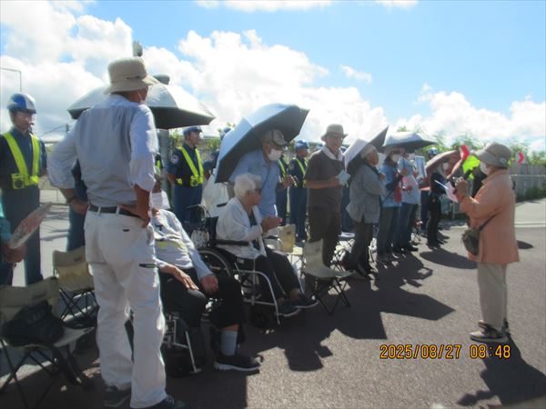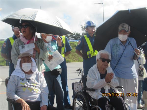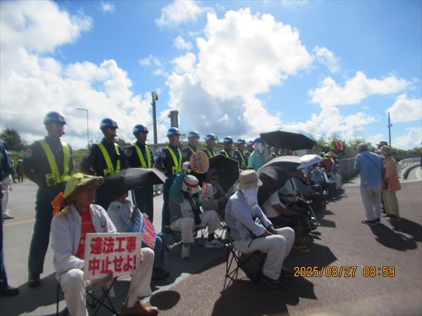 澄んだ青空に夏雲が美しい。炎天下で1時間以上も座り込み・抗議する身には恨めしいほどの晴天だ。